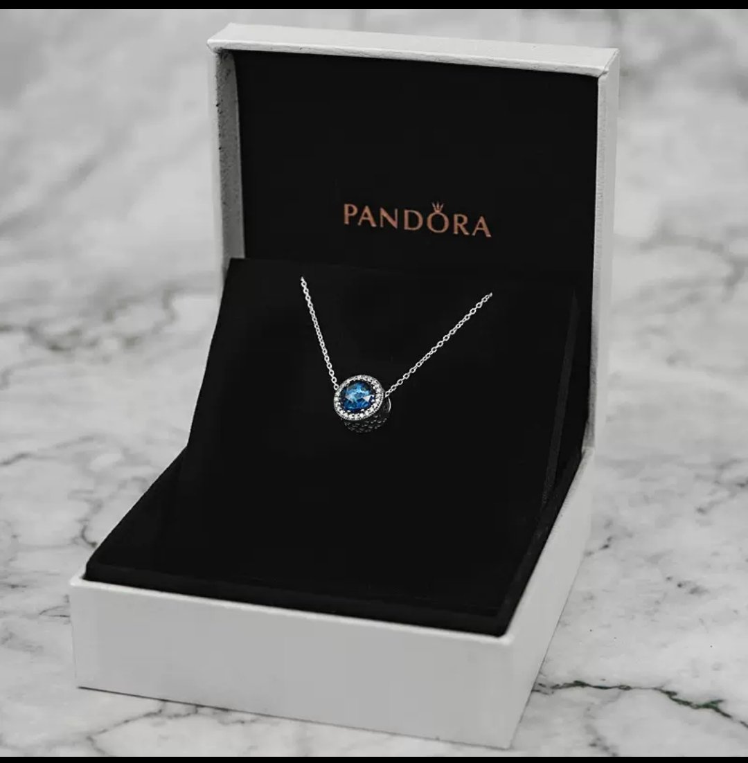 • “Colgante Pandora Halo Azul Brillante en Plata de Ley”