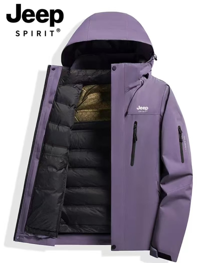 Chaqueton Jeep Spirit exclusivo, confeccionado con exterior impermeable y resistente al viento, combinado con relleno de plumon para maxima calidez en invierno. Diseño premium y original, pensado para ofrecer proteccion total y estilo en climas frios.