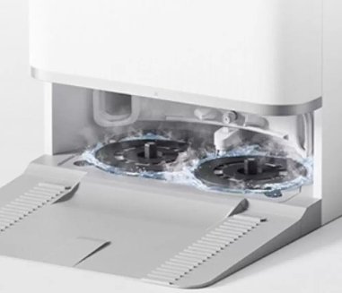 Doble Brazo Robótico de Limpieza Milimétrica: Su innovación más destacada. Dos brazos se despliegan para extender los trapos de fregado, permitiendo que limpie a menos de 1mm de bordes, zócalos y esquinas, zonas que otros robots no alcanzan.