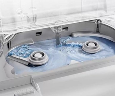 La base incluye una bandeja de lavado autolimpiante que se enjuaga sola después de cada ciclo.